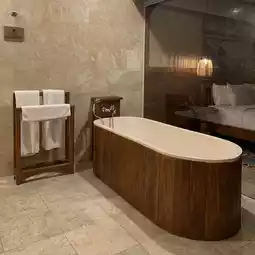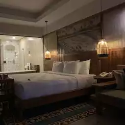We stayed at the classic room that was over 60sqm. The interior is designed in the Balinese design in teak wood. The air conditioning was strong, and the beds were super comfortable.