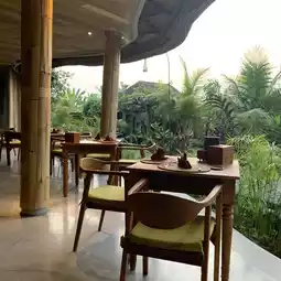 The resort has a lovely spa with a naturally heated outdoor pool, as well as stone chambers and private rooms for massage. There are also morning yoga and Balinese dance performance on the weekend.