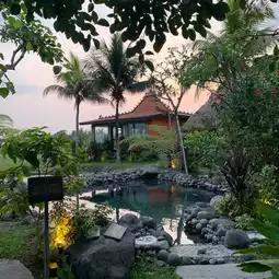 The Artenanka Resort and Spa in Ubud is an amazing place to relax and de-stress. It is a boutique resort hidden amongst narrow paths, rice fields and fruit trees, and away from the main roads. Guests arriving in cars will be dropped off at the drop off point ( next to the famous Moksa Restaurant), and the hotel staff will pick you up within 3-5 minutes, while the ride is only 3 minutes, and you get to enjoy the serenity of Ubud on every ride. This service is 24 hours. Every morning you will also wake up to hear birds chirping, and see ducks swimming in the streams.
