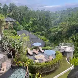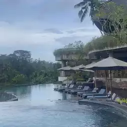 Padma Resort in Ubud is too expensive, but there are enough alternatives, so this is it. It is new but not well known yet, so the price is reasonable. The pool is well-maintained, there is a swim-up bar, and the food at the Indian restaurant in the hotel is great. The rooms are really big and well-organized, and the bathroom space is really good. You can fully enjoy the view and sounds of the Ubud jungle from the wide veranda. You can move around the resort by buggy. The staff is also friendly. Recommended!!