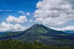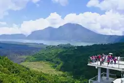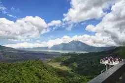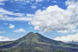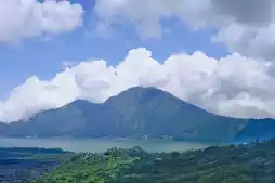 Mount Batur is an active volcano. At its summit, one can still see smoking holes, but it has been dormant for many years. Even if it were to erupt, the Indonesian government would issue early warnings.