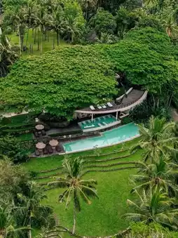 COMO Shambhala Estate is located in the forest of Ubud. The resort’s spa has won the honor of being "one of the top ten best spas in the world". "Shambhala" comes from Sanskrit and means paradise.