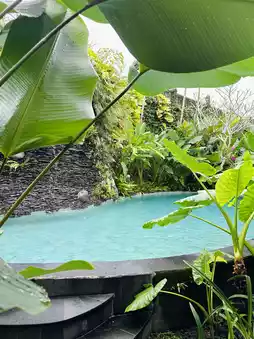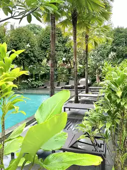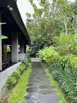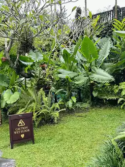 Walking in the hotel feels like being in a rainforest, with one-story suites, and when you open the curtains, you're greeted with a view full of greenery, even the air smells good.