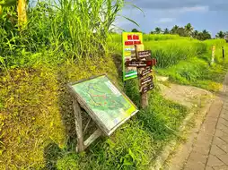 Great place, so serene, peaceful and green. The hiking trails are well prepared. Take at least the orange route, if you have time then the white - it's not all the same same, you will see different things. The times are well exaggerated on the plan, although it depends on how fast you walk and how many times you stop for pictures :-). The white route is 5.5km but a bit of up and down, and it IS hot. You can get a coconut on the way (20k IRP), great if you're thirsty. The entrance to the area is I think 50k, parking costs too. The rice fields are beautiful, though, highly recommended.