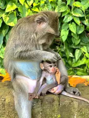 Very good experience here at the monkey forest. Slight drive out of town but easy to find with plenty of parking. This was my first experience of handling monkeys and I felt very at ease with them, partly due to the helpful guide that was with us. The monkeys were not aggressive in anyway and are very happy to be fed the peanuts provided within the ticket price. Price was 75k per person and the guide is happy to take photos for printing at a charge of 50k per photo. I would definitely recommend to anybody wanting to observe monkeys in a safe and friendly environment.