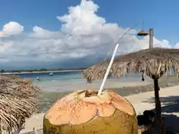 and drinking cool coconut juice while looking at the ocean🎶