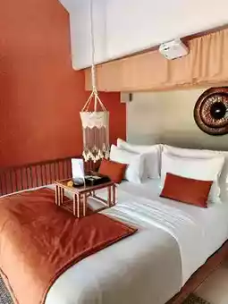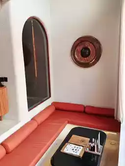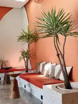 Moroccan-style orange-red cement wall,