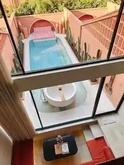 As soon as I entered the house, I was attracted by the large outdoor swimming pool.
