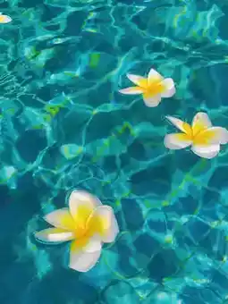 There were lots of trees growing by the poolside, and the plumeria floating in the pool was cute♡