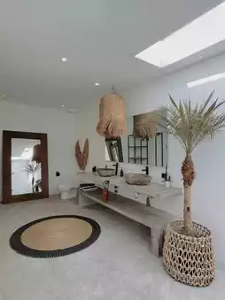*The rooms have high ceilings and feel spacious. The bathroom is also spacious and has good natural light from the skylight. The interior is Mediterranean and cute. The air conditioner works well.