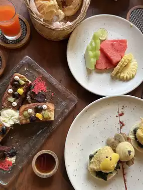 Atmosphere/Facilities: This accommodation features a quiet and comfortable atmosphere and a wide open jungle view. The pool view is great for taking pretty life shots, and since there is a free yoga class held every morning, it was nice to be able to experience Balinese yoga without any burden. There were also many menus for breakfast, and the food was delicious and pretty to look at, so I was able to start the morning feeling good. The staff was also very friendly, and it was a place where I could fully experience Ubud. If you have a schedule in Ubud, Bali, I recommend Aksari Resort ♥️