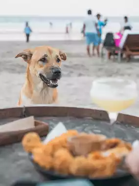 I sat on the sofa on the beach and ate, but I don't know if they were stray dogs or pets, but a lot of them gathered and I waited in front of the chicken 😂 In the end, I was surrounded by 5 or 6 of them 🥹.