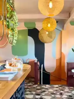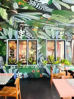 The exterior is eye-catching, and the interior is a lovely space with tropical paint art☺️