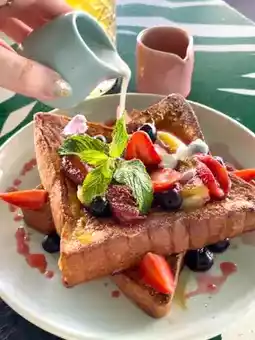 I had French toast🥪 and my friend had an acai bowl and eggs benedict😌