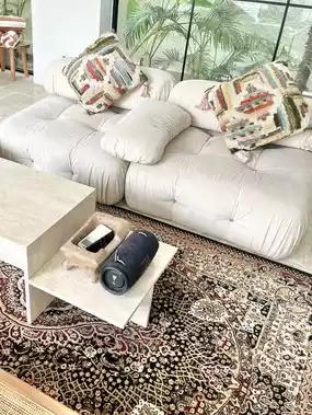 The villa includes a large living room, three bedrooms, and a laid-back corner on the second floor🌴