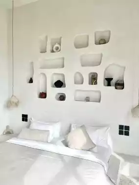 The villa's design features simple natural materials and ceramic woven crafts🤍