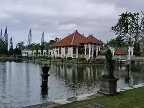 I visited the beautiful water palace 'Taman Ujung' located in the northeastern part of Bali. The Western-style buildings floating on the water and their reflections on the water's surface were breathtaking, reminiscent of scenes from a Western movie.