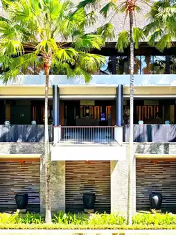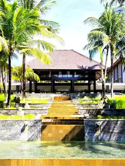 The Courtyard Bali Nusa Dua impresses with its extensive pool area, seamlessly linked with the Marriott Nusa Dua Garden, offering a vast space for relaxation. Highlights include a dedicated kids' pool with playful features and a unique pool that winds around the cafe, allowing parents to watch over their children while enjoying a sip.
