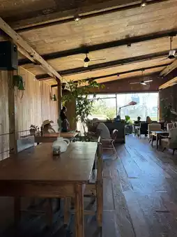Gigi Susu stands out with its aesthetically pleasing interior that embodies a rustic yet modern tropical vibe. The café features natural wood furnishings, lush green plants, and soft, ambient lighting, creating a warm and welcoming environment. Its open-air design allows for a pleasant breeze, making it an ideal spot to escape the Balinese heat and unwind.