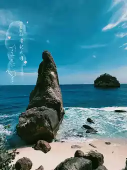 Listening to the waves, looking at the blue sky and white clouds, the isolated islands standing beside me are very spectacular.