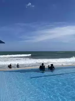 A spot in Bali where you can enjoy music and drinks while swimming in a pool not found in Japan