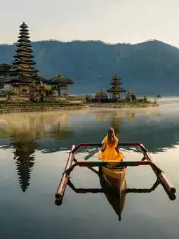 My trip to Bali was a magical and unforgettable experience. The island is characterized by its breathtaking scenery of white sandy beaches and green mountains. I enjoyed relaxing on Kuta Beach and watching the beautiful sunset. I visited the temple "Ulun Dano Pratan" which has a unique cultural character, where we enjoyed the tranquility and beauty surrounding it.
