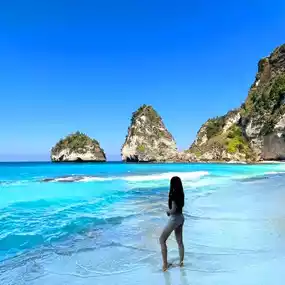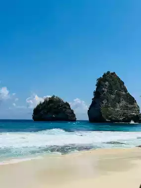 Diamond Beach is located in Nusa Penida, Bali. It is one of the most beautiful beaches in Bali. From a high point, we can see the spectacular cliffs and clear blue waters. There is a small island formed by weathering in the middle of the sea, which looks like a diamond. The worst decision we made that day was to wear slippers and walk to Diamond beach. Its stairs are uneven and very tiring. The road to the beach at the end is almost like rock climbing, so it is really dangerous to wear flip flops. Don’t learn from us! But luckily we got through. The sand at Diamond beach is fine and white, it is a great place to have fun 👍🏼 Diamond Beach is really beautiful. Whether you want to relax, take photos or explore nature, this place is perfect 🤍Highly recommended👍🏼