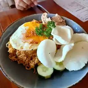 And the food that impressed me the most in Bali!! The food in Bali was really, really delicious. There were many places that made delicious sweet pork ribs and Western-style pizza, and it was so good to eat a variety of Indonesian dishes. The nasi goreng fried rice and mi goreng fried noodles that we all know were delicious, and the soup made with oxtail bones and the shrimp and chicken skewers had a nice smoky aroma and a juicy texture that made me want to keep eating them.