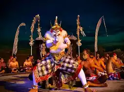 The story is based on the Ramayana epic, featuring scenes of Rama, Sita, and the monkey god Hanuman. The performance involves a large group of male dancers who chant "cak" in a rhythmic pattern, creating an immersive and captivating atmosphere. The sunset setting adds to the experience, making it a popular cultural attraction for visitors.