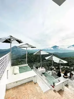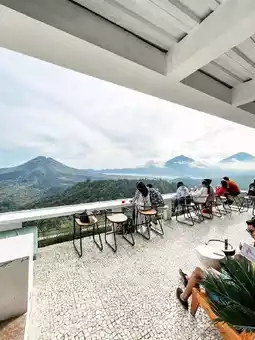 Great place to watch the sunrise at Kintamani Paper Hill 😍 This cafe opens at 5:30am everyday. We came at 6am and it was so cold! It was still foggy but we waited for the fog to clear and the view was really really beautiful 😍😍 You can have a cup of hot chocolate while looking at the beautiful view of Mount Batur. It's really a beautiful view! Get ready to be mesmerized 😜💚