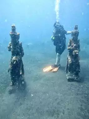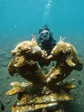 This Coral Garden is an ideal site for beginner and experienced divers. It offers a unique opportunity to compare natural coral and many statuesz
