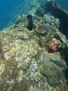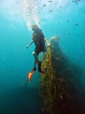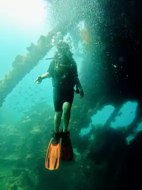 For the beginners you can only going to 12m area and the deepest part is around 28m – 30mwhere the bow has settled into the sand. Besides the cargo ship you also can see an unique underwater animal and corals.