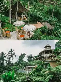 Tis Cafe Seeing the view of rice terraces is another highlight of Bali. So, next, we would like to take you to the greenery in a cafe and poolbar with a beautiful rice field view that will make you feel wow from the moment you walk into the shop. With the view in front of you, the atmosphere, decorations, and the magnificent shop, no matter where you sit, you will get beautiful photos in every corner. Plus, the food is delicious and the price is cute and adorable. For us, Tis Cafe is not far from the city center. The atmosphere is good, you can get beautiful photos, and you will get green and comfortable to the eyes. If anyone has time, I would like to recommend that you should come. You should make it one of your plans.