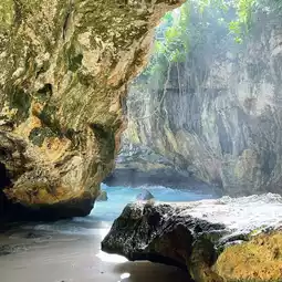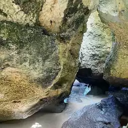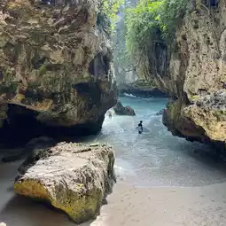 Suluban Beach, also known as Blue Point Beach, is a hidden gem in Uluwatu, Bali, offering a unique experience for visitors. To reach this beach, visitors must descend about 100 steps and pass through gaps between the rocks. Upon arrival, you will be greeted by fine white sand and clear sea water, ideal for swimming and relaxing. Although not deserted, the atmosphere at Suluban Beach feels calmer than other popular beaches such as Padang Padang.