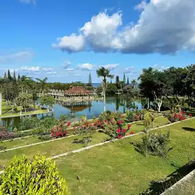 Nestled in the serene landscape of Karangasem, Bali, Ujung Water Palace, also known as Taman Ujung, is a stunning blend of Balinese, Chinese, and Dutch architectural styles. This former royal palace, surrounded by lush gardens and tranquil ponds, offers a glimpse into Bali’s rich cultural heritage. The elegant bridges, intricate stone carvings, and the majestic floating pavilion create a picturesque setting that feels like a step back in time. Whether you’re exploring the historic buildings or simply enjoying the peaceful ambiance, Ujung Water Palace is a testament to the island’s timeless beauty and charm.
