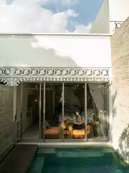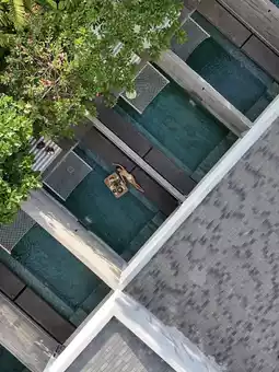 The two districts of Seminyak and Canggu can be said to be filled with villas, but most of them are mainly pure white and take a simple Greek-style route. This time I hope to introduce a more special, dark green and white villa for you💚! Walk to the villa corridor full of green plants, even in front of the door has a tree, the reason is that his land did not because the villa to cut down the tree, but kept in place 🫶🏻 There is a room super stylish, very surprising, and the glass between the private large swimming pool, natural light can shine into the room, smart design, photography very out 😍