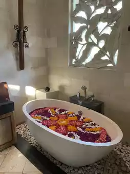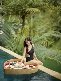 If you like to appreciate the local traditional culture and design, Dedary Resort Ubud is for you! It retains the traditional architectural style, older style, and different corners of the resort have added Balinese characteristic statues and paintings, so that guests feel Balinese traditional culture👑 Location is farther from the city center, very quiet, but closer to the most famous terraced attractions, so it is convenient. There are many terraced fields nearby, even the room view is facing the locals of the terraces, very relaxing frame 😍 while adopting a duplex design, the upper floor is the bedroom toilet, the lower floor has a kitchen, living room and swimming pool! I wonder if you like it?
