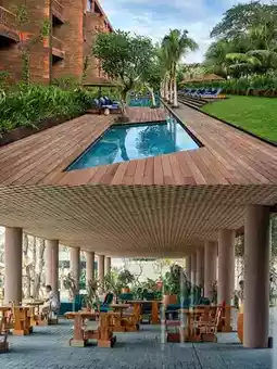 The public areas are a paradise for vacationers! In the lush courtyard, comfortable loungers are placed, perfect for a leisurely afternoon with a gentle breeze and the scent of flowers. Time seems to slow down. The blue pool sparkles under the sun, and swimming in it washes away all your stress and fatigue. 🏊