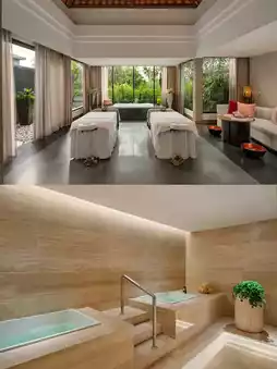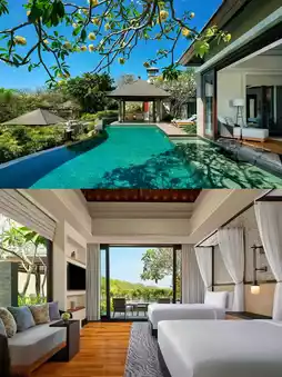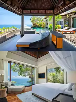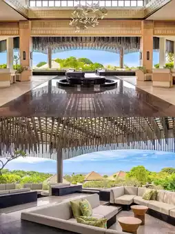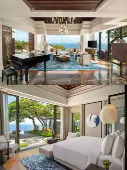 🏨 The hotel's architecture is unique, combining traditional Balinese elements with modern design. The lobby has high ceilings, exquisite wood carvings, and artistic decorations that create a strong exotic atmosphere. The rooms are spacious and comfortable, with elegant decor and attention to detail. The large floor-to-ceiling windows let in plenty of light and offer stunning views.