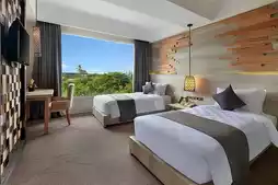 The Jimbaran Bay Resort and Spa by Prabhu is located in the Kedonganan area of Bali, very close to Jimbaran Beach. The resort's design is modern and full of tropical style, giving people a sense of relaxation during vacation. The rooftop bar offers stunning sunset views, and the hotel's spa and swimming pool cater to our needs for relaxation and enjoyment.