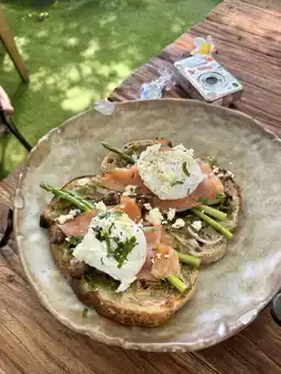 The café’s interior is filled with bright, quirky décor that adds to its lively charm. The outdoor seating area, surrounded by greenery, provides the perfect setting to enjoy Bali’s tropical weather. As for the menu, Penny Lane offers a range of tasty dishes, from hearty breakfast options like avocado toast and smoothie bowls to flavorful lunch choices such as healthy salads, wraps, and bowls packed with fresh ingredients.