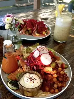 The menu at The Hula Bali is a delightful mix of healthy options, including smoothie bowls, salads, and nourishing bowls packed with vibrant, local ingredients. The café also features a tempting selection of pastries and freshly brewed coffee, making it a great spot for brunch or an afternoon pick-me-up. Not to mention, the extensive drink menu offers everything from creative cocktails to refreshing juices, perfect for sipping while you watch the waves roll in.