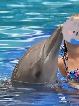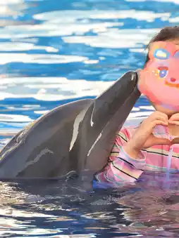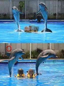 All interactive dolphins have passed health inspections. There will be protective explanations before 0âĢïļinteractions, and teachers will accompany them during underwater activities. Children will love petting, taking photos, and kissing dolphins.