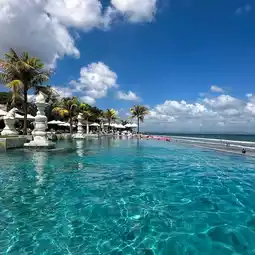 Located on Seminyak Beach, this resort offers a luxurious and stylish retreat. Guests love the beachfront infinity pool, elegant suites, and villas with private pools. The lush gardens and traditional Balinese architecture create a serene ambiance. Dining options include Sanje, which serves fresh seafood with ocean views. The Kahyangan Spa provides relaxing treatments in a tranquil setting. Perfect for those seeking a mix of relaxation and proximity to Seminyak’s vibrant nightlife and shopping scene.