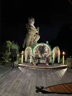 The resort is very well equipped, so you can have a full day here. The gym is well-equipped, and there are free yoga classes and hiking activities ๐ฟ. We also tried the hotel's complimentary 10-minute spa, which was very relaxing. For dinner, we tried the restaurant's signature dirty duck rice, which was delicious, and we were lucky enough to watch a traditional Indonesian dance performance. ๐