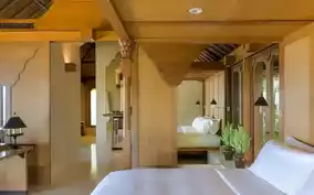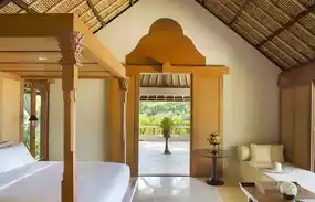 The guest rooms at Amankila are a highlight of the resort, skillfully blending traditional Balinese aesthetics with the comfort of modern luxury.