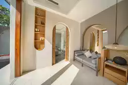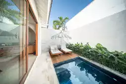 Astera Villa Seminyak is located in the vibrant Legian area, known for its luxurious villas and stylish design. Each villa features its own unique modern decor style, creating a perfect blend of warmth and privacy. The villa’s exterior is beautiful, surrounded by tropical plants, providing guests with a peaceful resort atmosphere. This place is ideal for guests who want to escape the city noise and fully enjoy their leisure time.