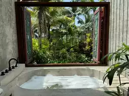 Nature, delicious food, and endless scenery—staying here feels like entering a dream vacation destination. The hotel is small but exquisite, and the small pool in the room is the perfect finishing touch. The flowing water during the day gives a pure and refreshing feeling. There is also a hammock, where just lying down and snapping a photo creates a beautiful picture.