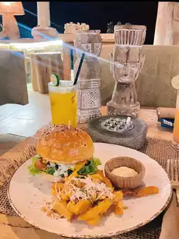 At night you can see the stars, and the lit-up restaurant is so cute🕯️ The cheeseburger was delicious🍔
