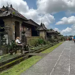 Penglipuran Village in Bali island shows traditional Balinese cultures in calm atmosphere. With beautiful Balinese architecture which is well preserved, stone streets and greeneries on each side, cleanliness and nice greeting from the locals, a visit here gave me a good and peaceful feeling. Behind the houses, there are some small souvenir stalls operated by the locals themselves.